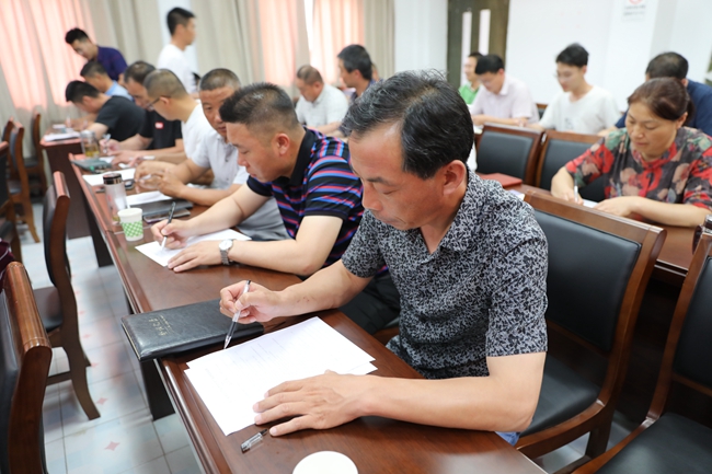培訓結束后,全體人員參加安全知識隨堂測驗。 (顧 益)