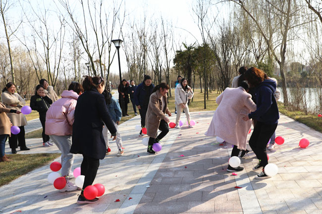 為使大家身心得到最大放松,投入戶外體驗(yàn)清新大自然,在絲路小鎮(zhèn)公園進(jìn)行了“三月女人天 別樣?jì)D女節(jié)”主題戶外活動(dòng)。游戲“你畫(huà)我猜”中,隊(duì)員們有的配合默契一猜既中,也有的用肢體艱難的比劃著,引的大家捧腹大笑?!安葰馇颉庇螒蚋亲尙F(xiàn)場(chǎng)氣氛達(dá)到沸點(diǎn),每人都放開(kāi)平日工作中的嚴(yán)謹(jǐn),放松心情在場(chǎng)地上追逐奔跑。大家在游戲中收獲了歡聲笑語(yǔ)及片片感動(dòng),同時(shí),通過(guò)游戲提高大家的合作意識(shí)和進(jìn)取精神,營(yíng)造濃郁節(jié)日氣氛。