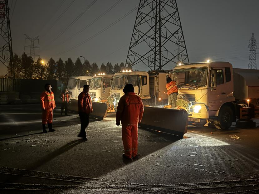 “搖人,快搖人”。環(huán)衛(wèi)分公司迅速響應(yīng)并于凌晨1點(diǎn)01分緊急啟動(dòng)掃雪除冰應(yīng)急預(yù)案,全力以赴迎戰(zhàn)風(fēng)雪。