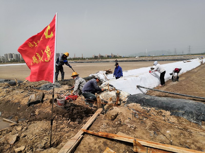 5月13日,大浦工區(qū)東灘上一片繁忙的景象。東灘1680公畝鈣鹽結(jié)晶池全部改為礦鹽生產(chǎn),由于面積廣、工期緊,任務(wù)重,人員少,搶占在“小滿”之前全部灌池難度比較大,嚴(yán)重影響全年原鹽產(chǎn)量。針對這一現(xiàn)象,工區(qū)迅速作出統(tǒng)一部署,精心組織西灘、太和段黨員突擊隊(duì)全員行動,一起助力東灘灌池?;顒又校蠹覕]起衣袖、揮舞鍬锨,你追我趕、有條不紊,經(jīng)過一天突擊,平整鹵格80公畝、放繩2000米、包裹浮板500米、打樁20根,以實(shí)際行動展現(xiàn)了黨員突擊奉獻(xiàn)服務(wù)風(fēng)采,為工區(qū)完成全年四萬噸原鹽目標(biāo)奠定了堅(jiān)實(shí)基礎(chǔ)。