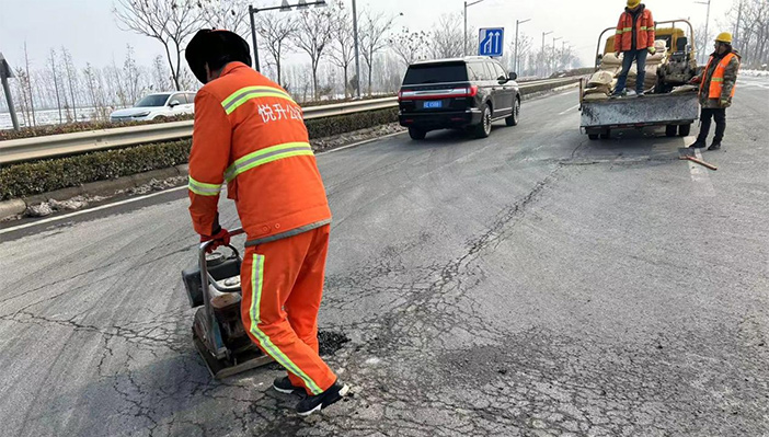 市政維護(hù)“有龍威”。大年初二,市政值班人員在日常巡視中發(fā)現(xiàn)港前大道至蘇海路段出現(xiàn)3處道路坑塘,造成極大的道路交通安全隱患。值守工作人員第一時(shí)間帶好瀝青冷補(bǔ)料,切割機(jī)和平板振動(dòng)夯等工具第一時(shí)間到崗到位。擺好安全警示錐、路面切割、補(bǔ)料、修復(fù)……大家齊動(dòng)手,配合和諧,連續(xù)作戰(zhàn)2個(gè)多小時(shí),高質(zhì)高效將道路坑塘修補(bǔ)到位,確保春節(jié)期間道路交通安全。